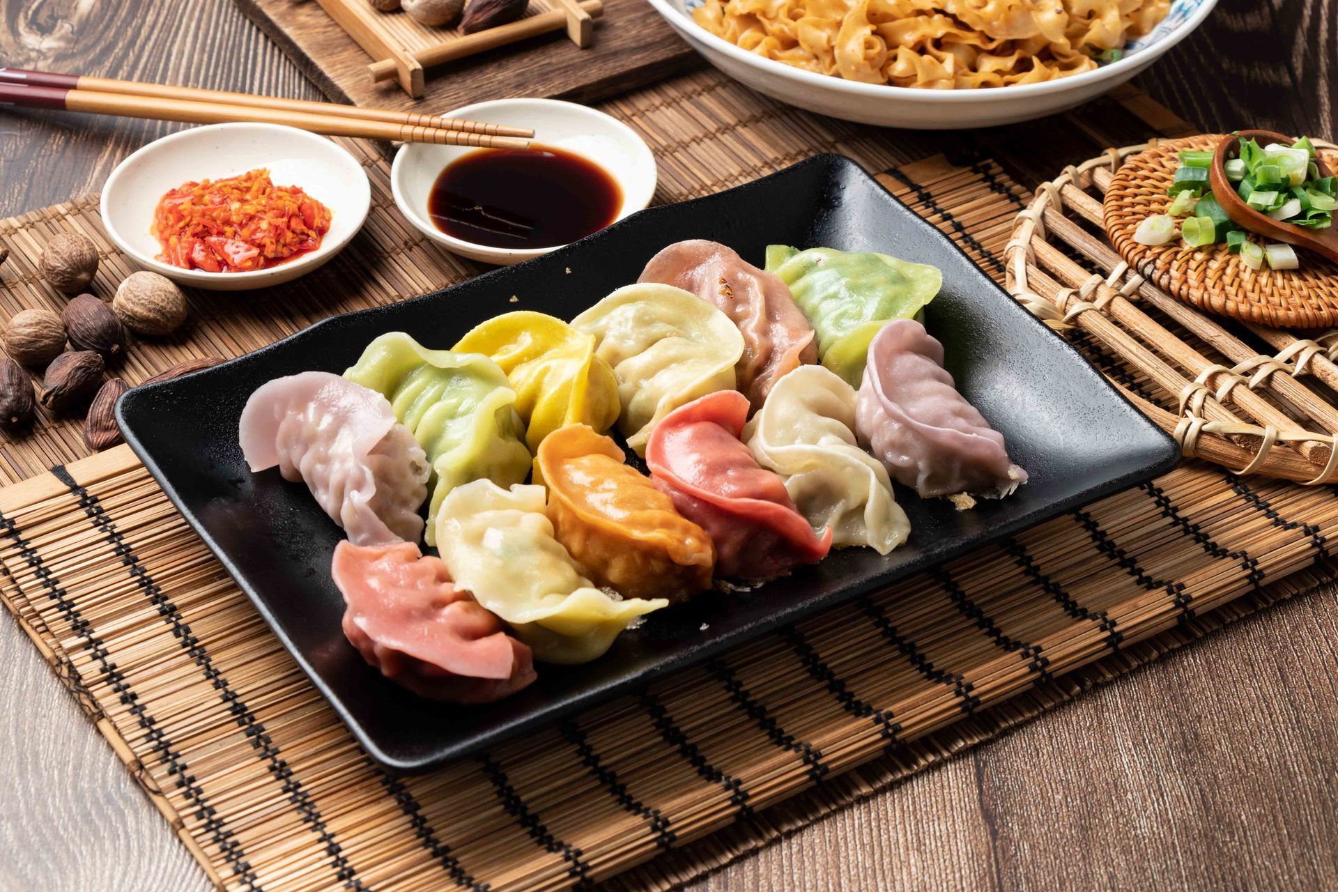 嚴選溫體台灣豬後腿肉,每顆鮮綠色的韭菜水餃的Q彈的外衣,都經由菠菜粉調配而成。鮮綠的外衣給您意想不到的純正美味,溫體後腿肉和韭菜的內餡給您豐富的口感享受;融合了美味與健康,絕對是老饕們的最愛。